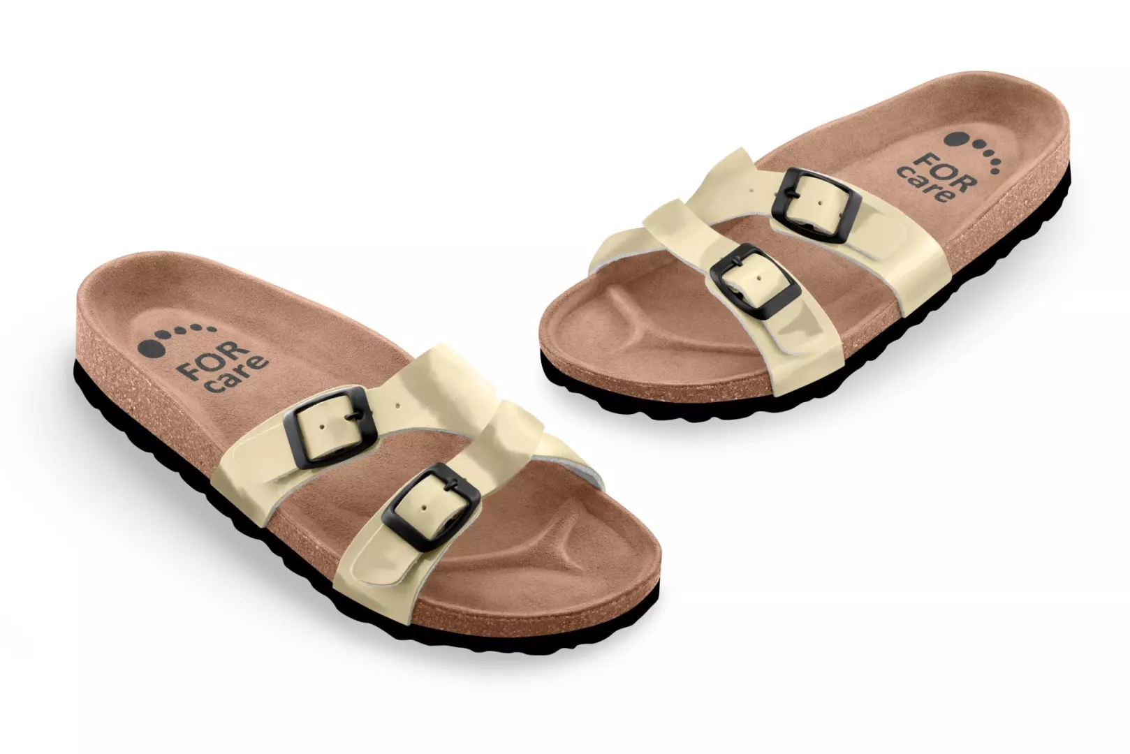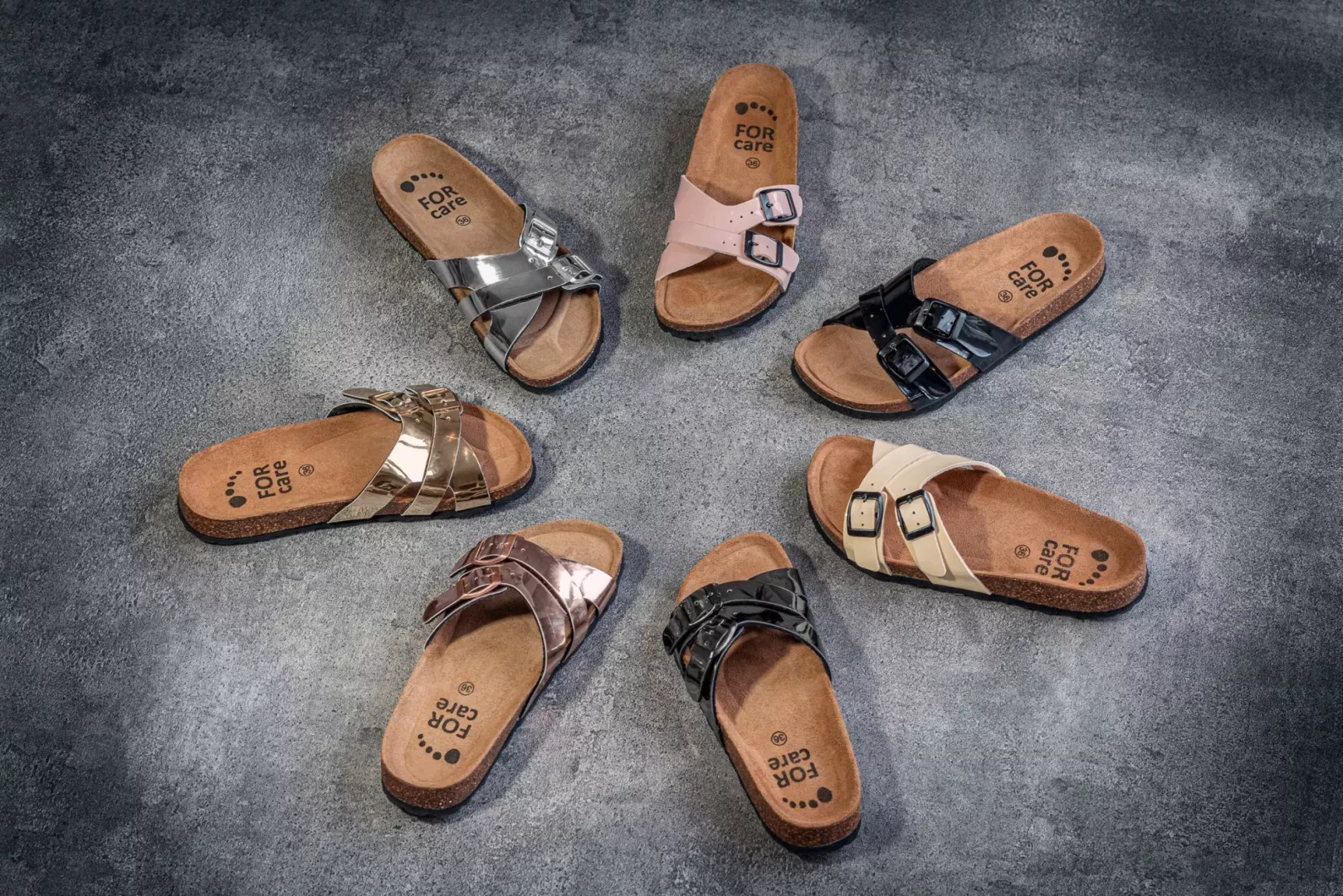 Metalické korkové pantofle FORcare představují ideální spojení elegance a pohodlí.