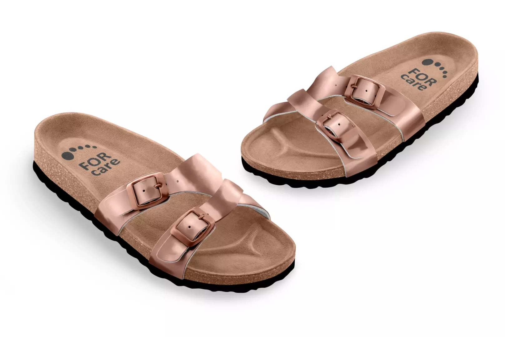 Metalické korkové pantofle FORcare představují ideální spojení elegance a pohodlí.
