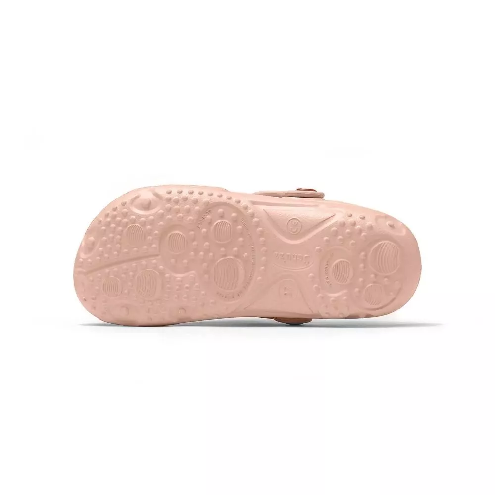 Ventilační otvory podporují cirkulaci vzduchu a zvyšují komfort při celodenním nošení. Díky uzavřené špičce je chodidlo chráněné, zatímco otevřená konstrukce umožňuje snadné nazouvání.